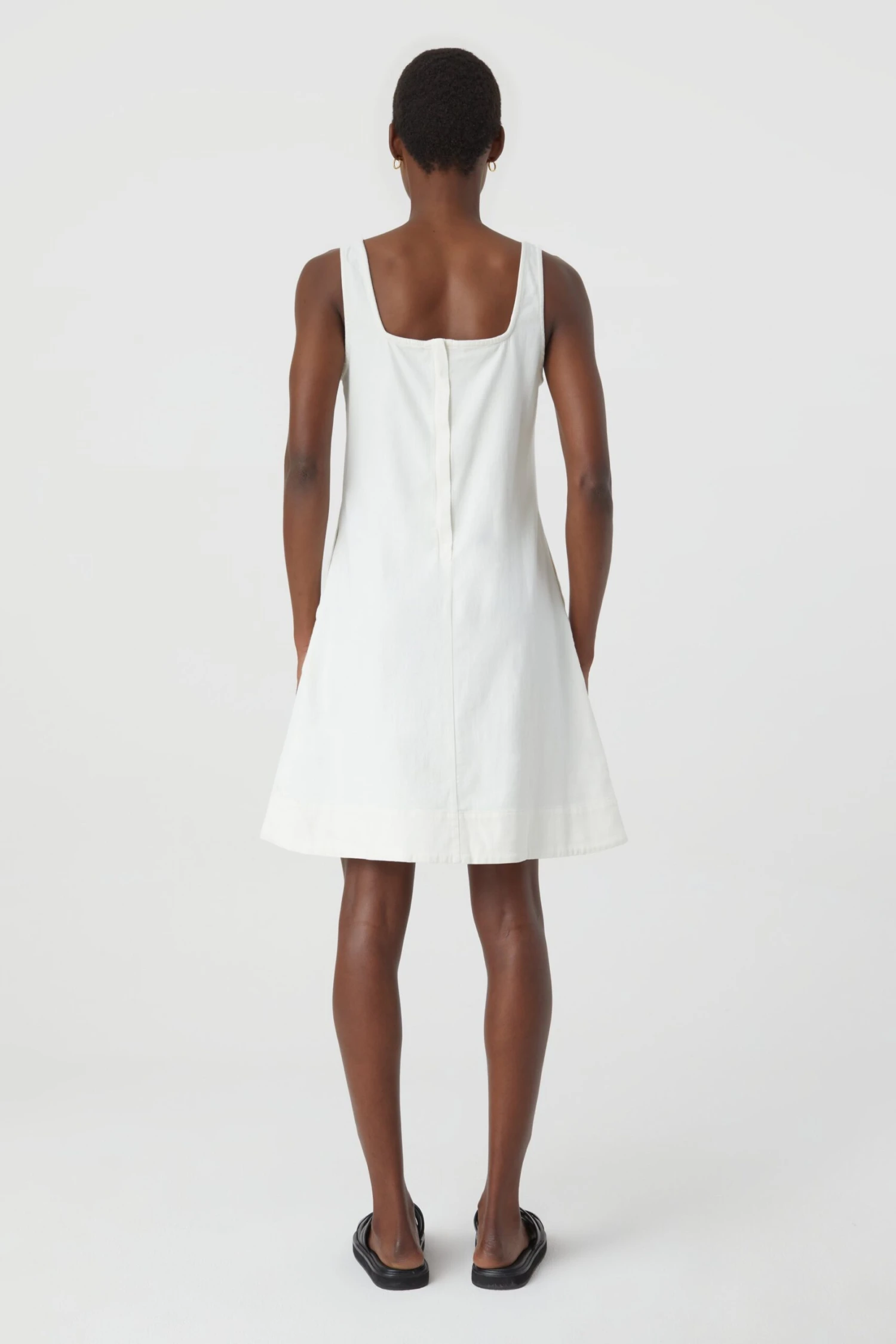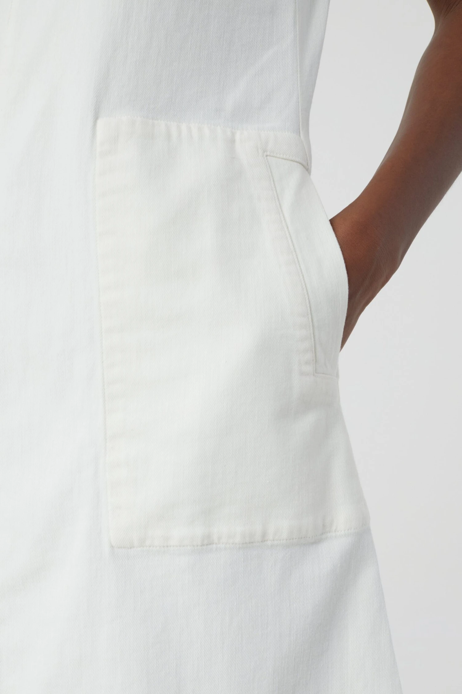 Denim Dress aus cleanem, leichtem Denim mit Stretch-Anteil. Slim Fit im 60s-Look mit mittlerer Naht, seitlichen Eingrifftaschen und geradem Saumabschluss. Verdeckter Reißverschluss auf der Rückseite.
