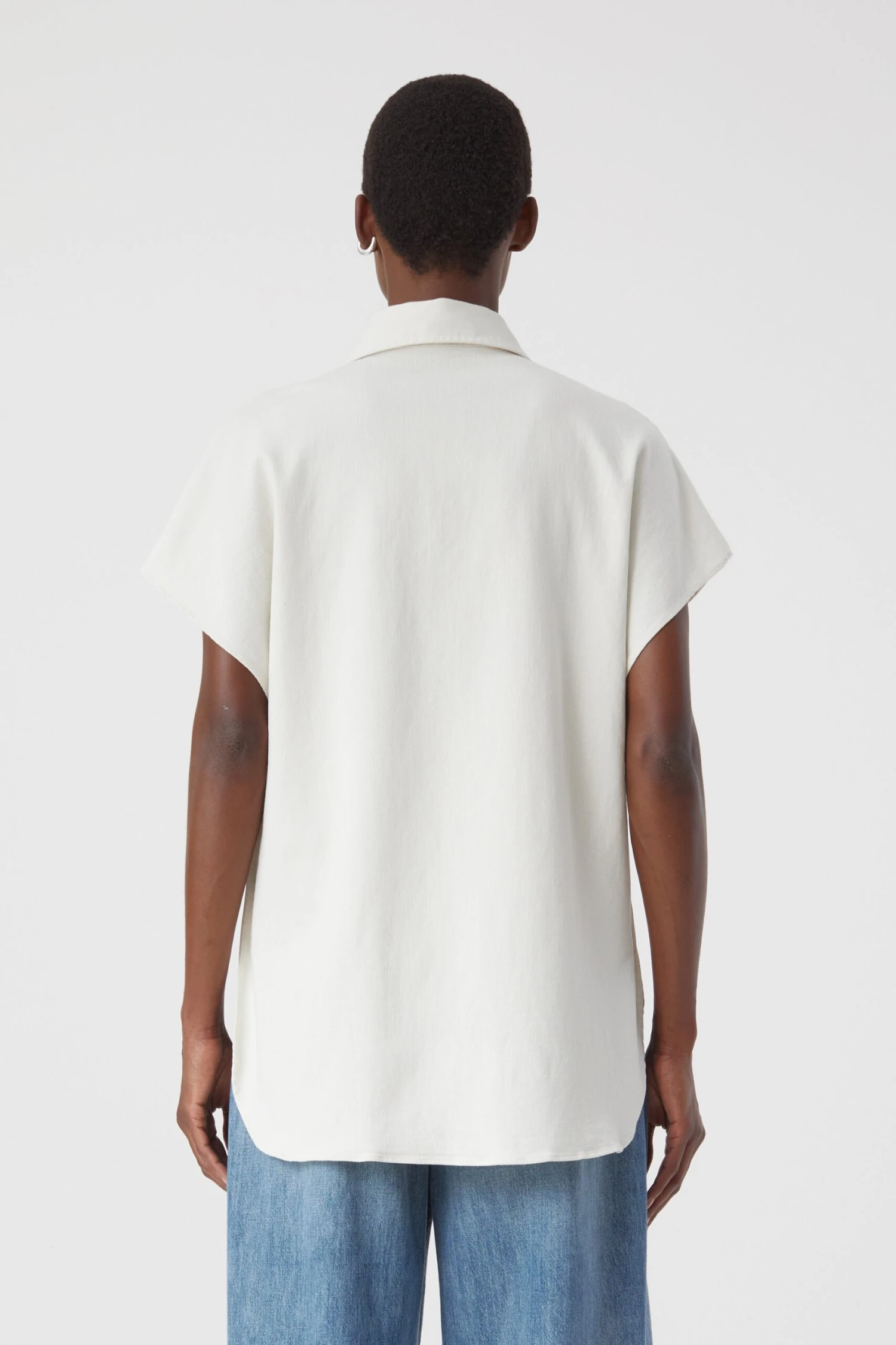 Short Sleeve Shirt aus sehr leichtem Ecru-Denim mit feiner Struktur und weicher Haptik. Im Regular Fit mit überschnittener Schulter, gefassten Seitennähten und Seitenschlitzen sowie mit Brusttasche und Perlmuttknöpfen.