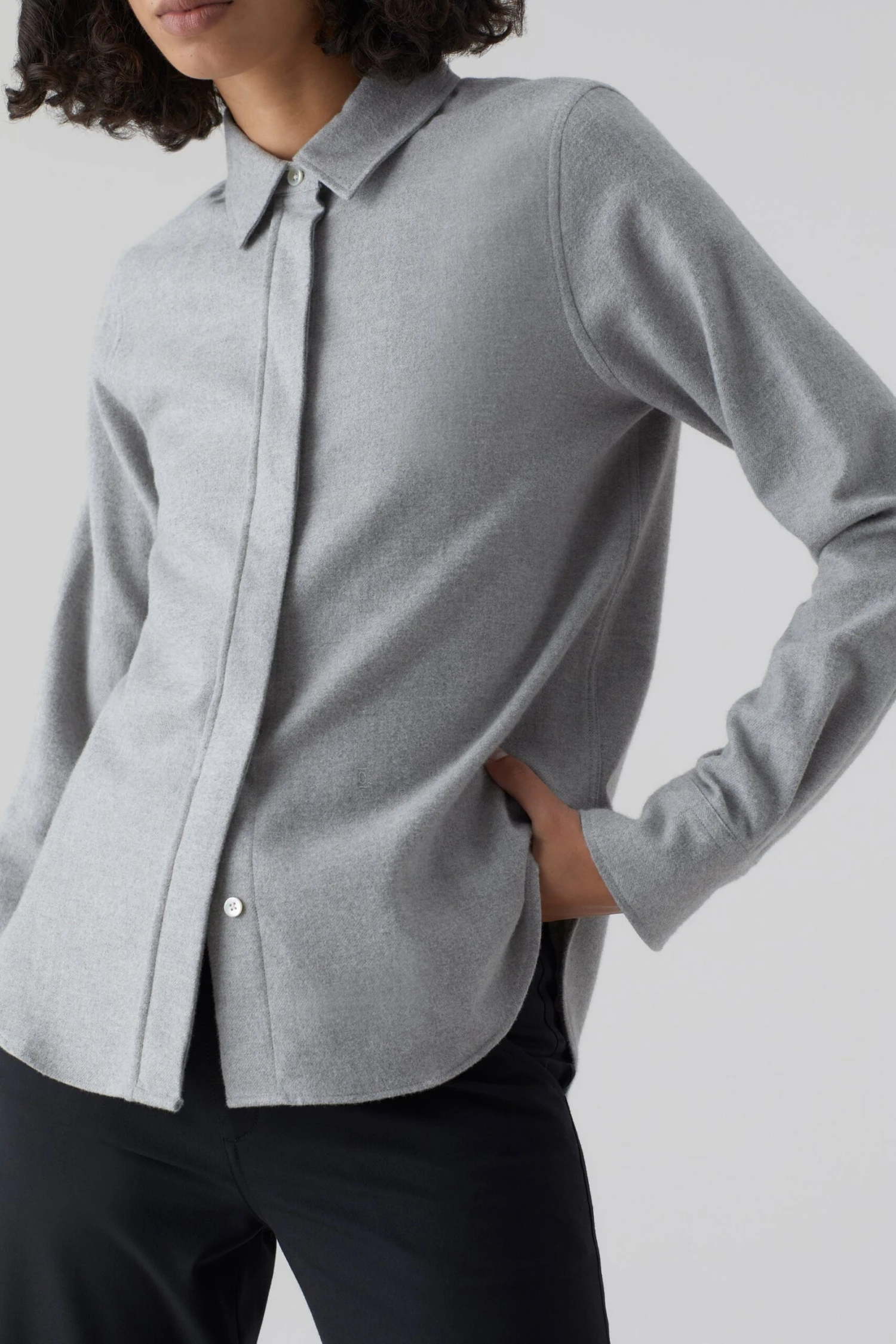 Gefertigt aus sehr leichter und weicher Qualität: Hemd aus reiner Baumwolle mit Kragen und verdeckter Knopfleiste mit Perlmuttknöpfen sowie mit Manschetten an den Ärmeln und geradem Saumabschluss.