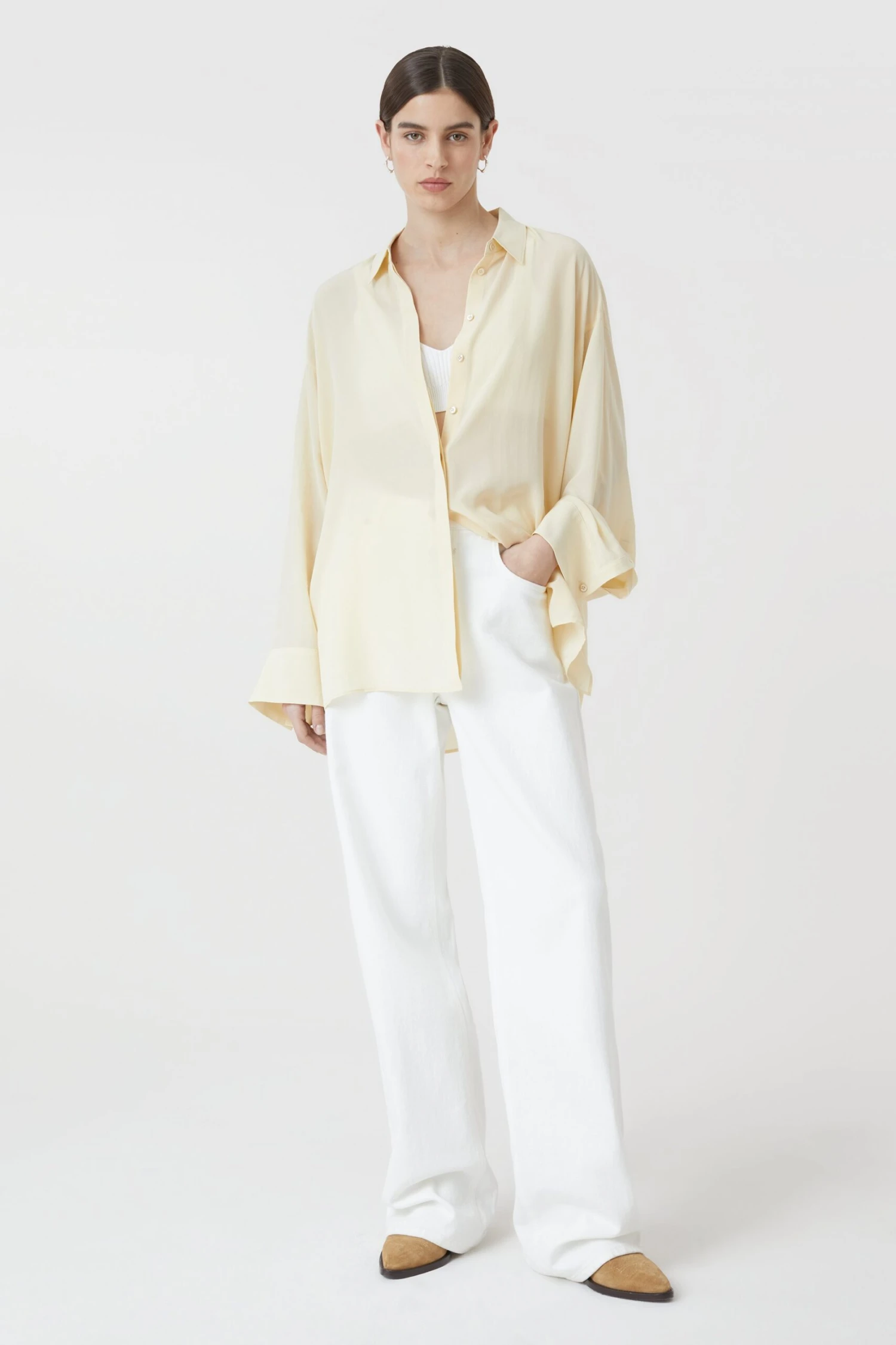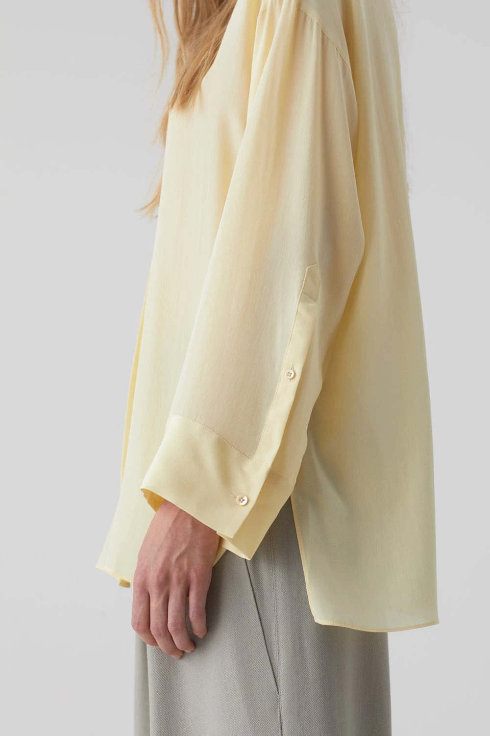 Bluse mit Kragen und gerader Knopfleiste im Relaxed Fit aus reiner Seide – leichte und weiche Qualität. Mit breiten Manschetten an den Ärmeln und Perlmuttknöpfen.