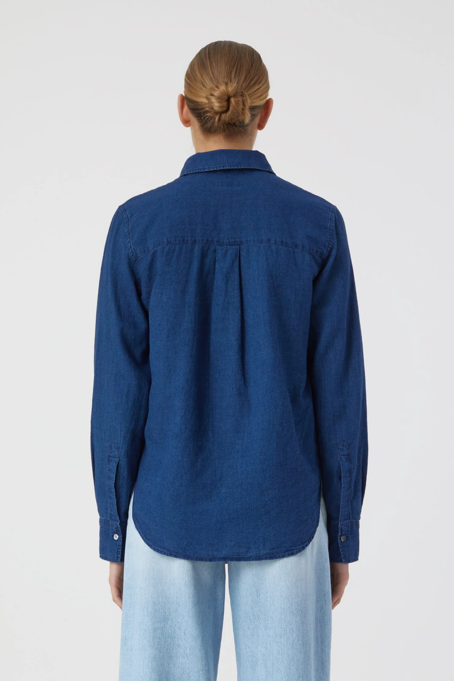Gefertigt aus leichtem Indigo-gefärbtem Leinen-Baumwolle-Mix mit lebendiger Struktur in gewaschener Optik: Hemdbluse im Regular Fit mit verdeckter Knopfleiste und Perlmuttknöpfen.