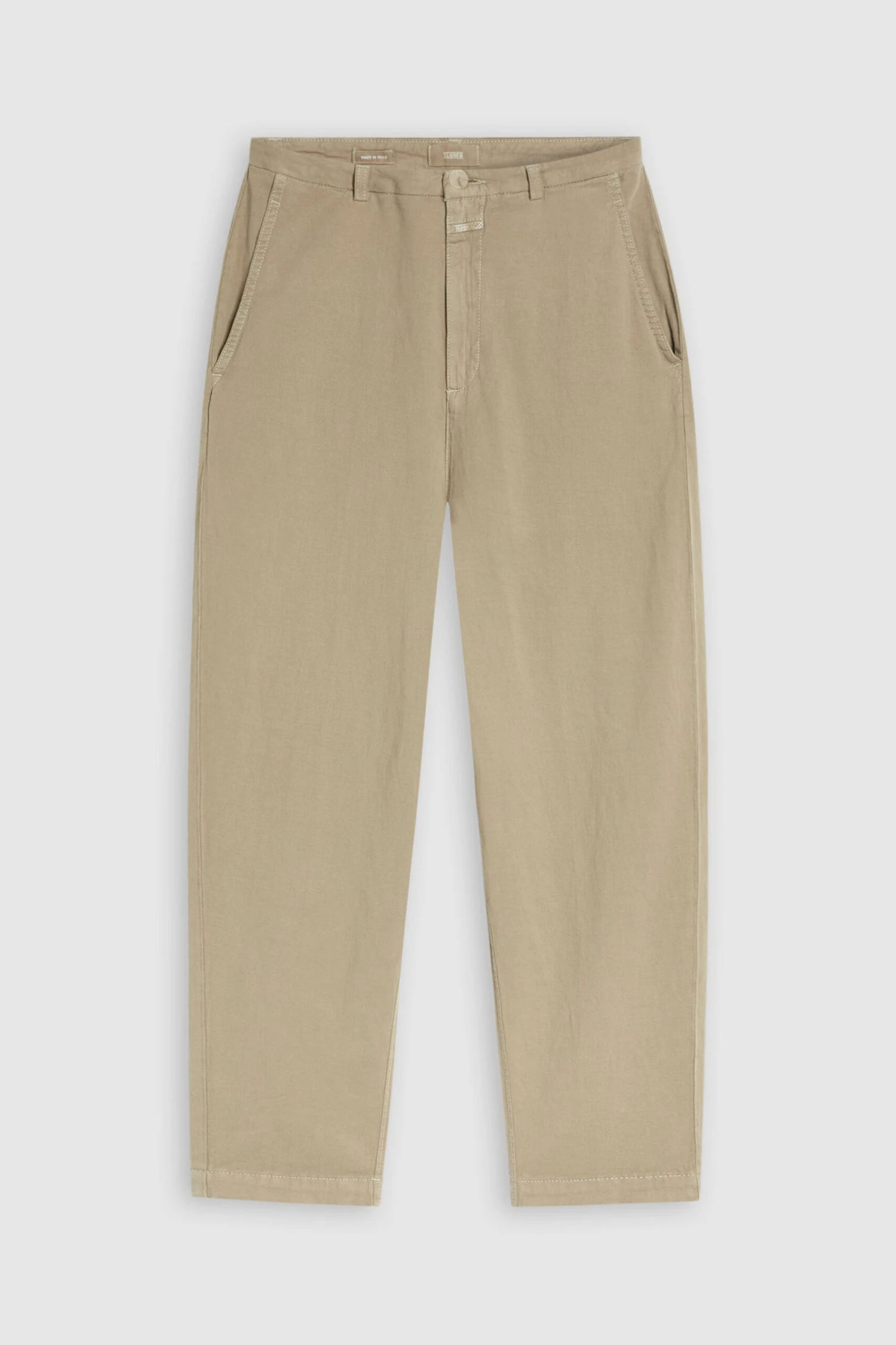 Style Mawbray im Relaxed Fit mit schmalem Bund aus softem Baumwoll-Mix – italienische Qualität mit Leinen-Anteil und Elasthan. Gefertigt bei unserem Partnerbetrieb Paul in Italien. Mit Knopf in heller Horn-Optik und Fly Label.