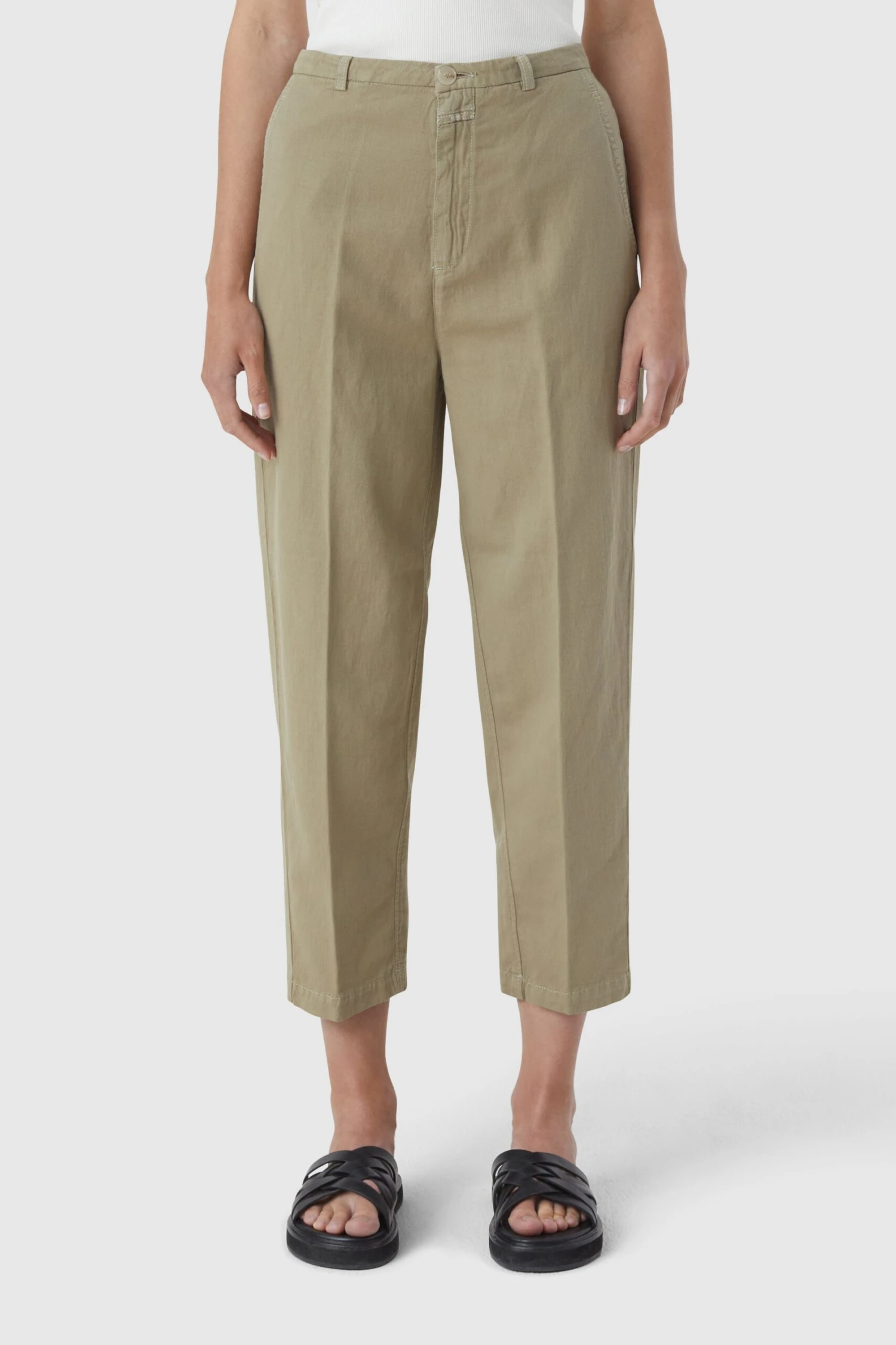 - – Relaxed Fit / Mid Waist / Tapered Leg / Cropped Length