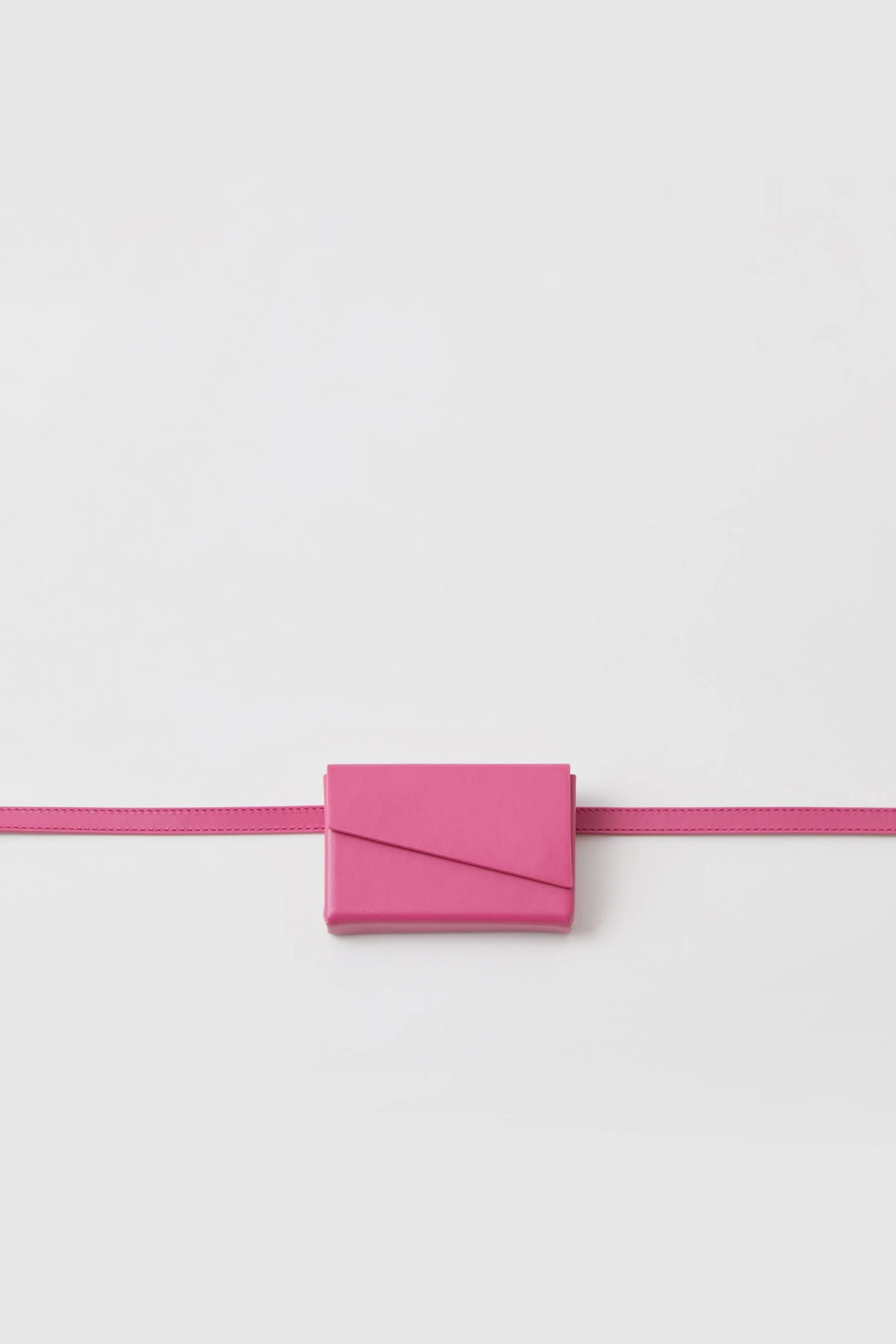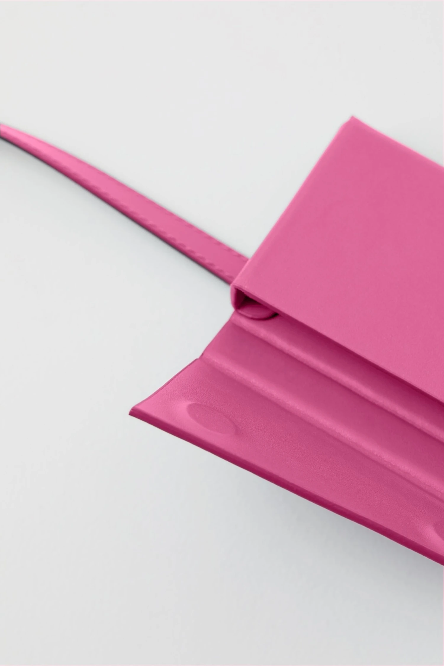 Aus weichem Leder gefertigt: Mini-Hardcase-Bag mit asymmetrischem Umschlag, Magnetschließe und längenverstellbarem Riemen.