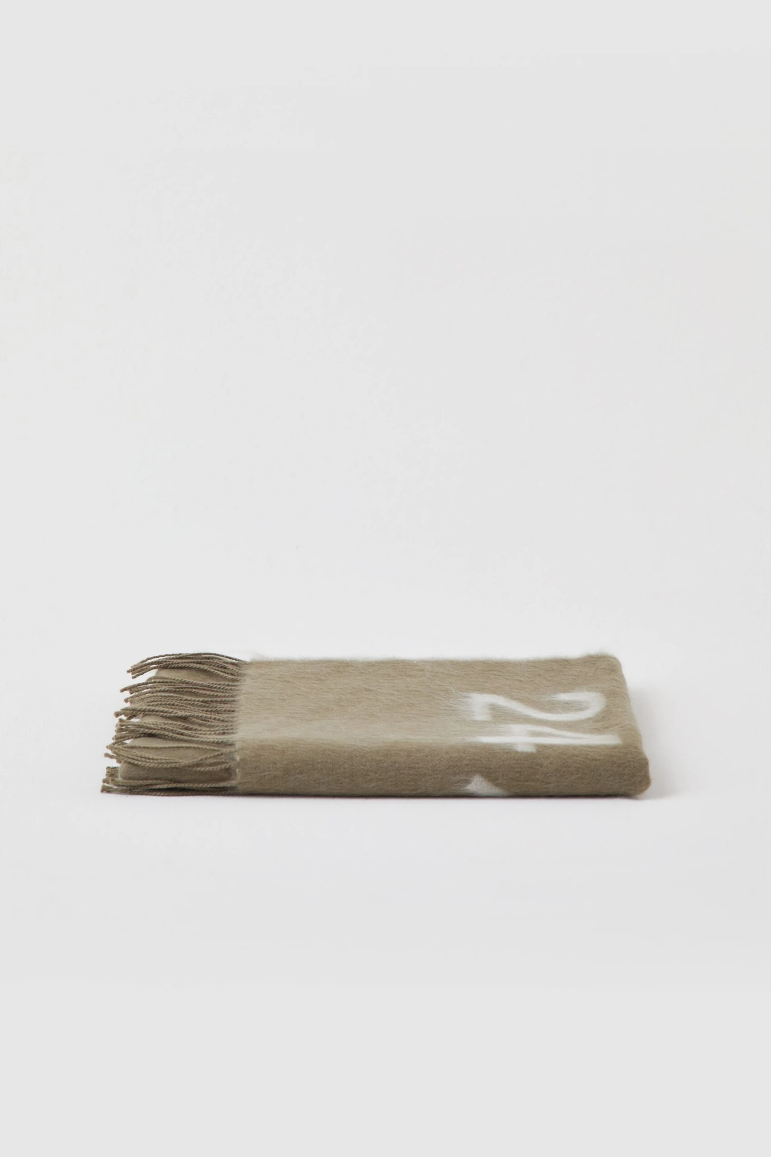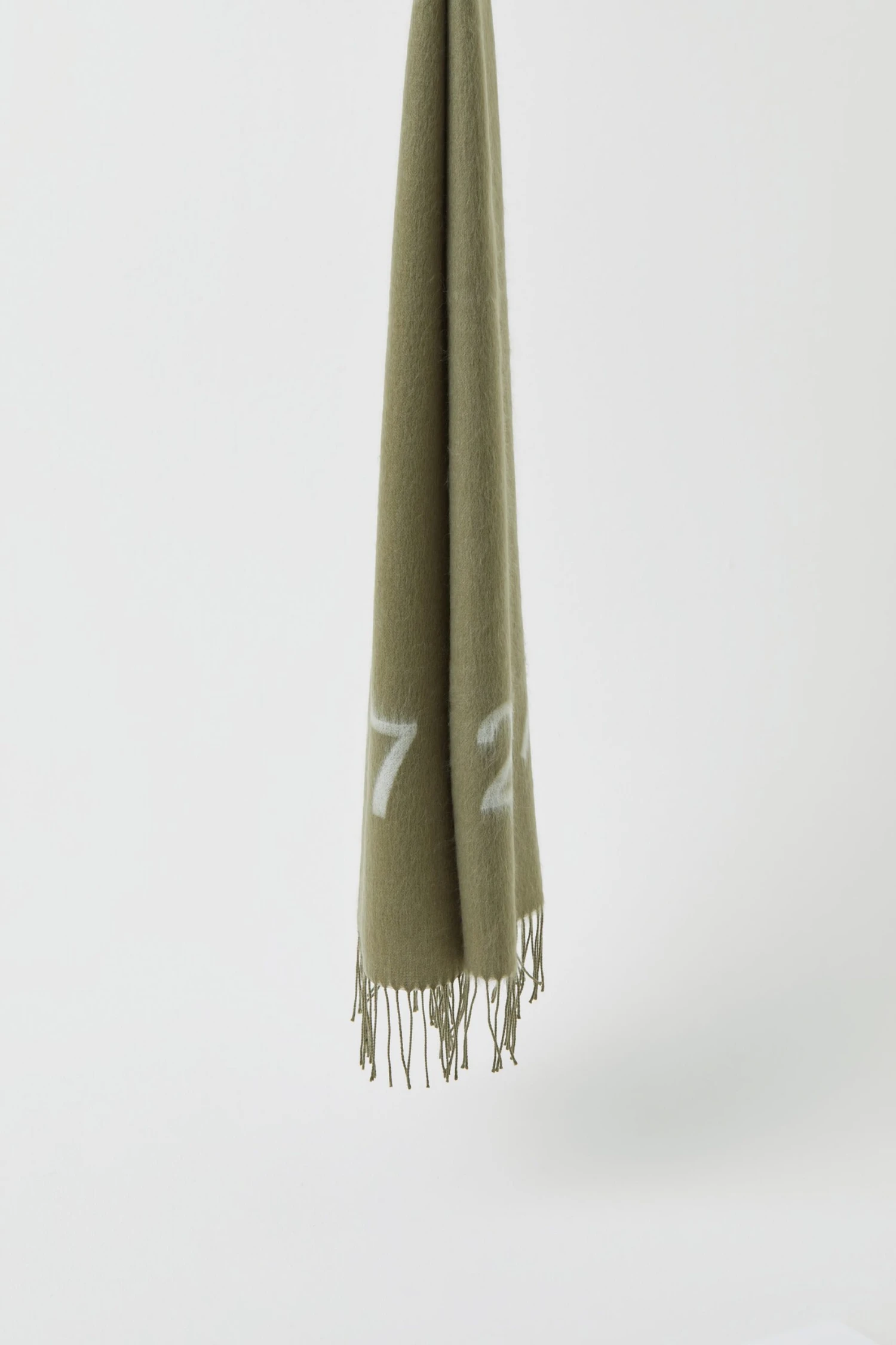 Made in Italy aus reiner Schurwolle mit weich gebürsteter Oberfläche: Jacquardschal mit dezenter Kontrastkante und 24/7-Schriftzug sowie Kordeln an den Enden.