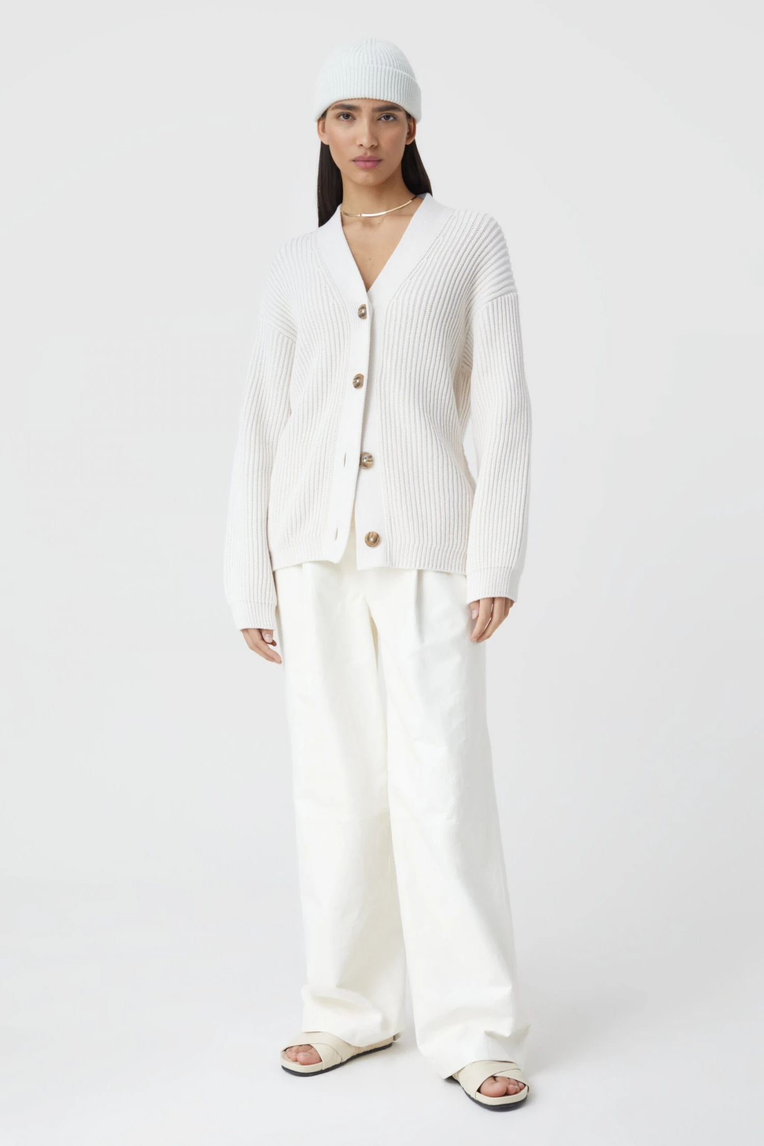 V-Cardigan im Fisherman’s Rib, gestrickt aus hochwertigem organic Garn. Regular Fit mit Knöpfen in Horn-Optik und geradem Ärmel- und Saumabschluss.